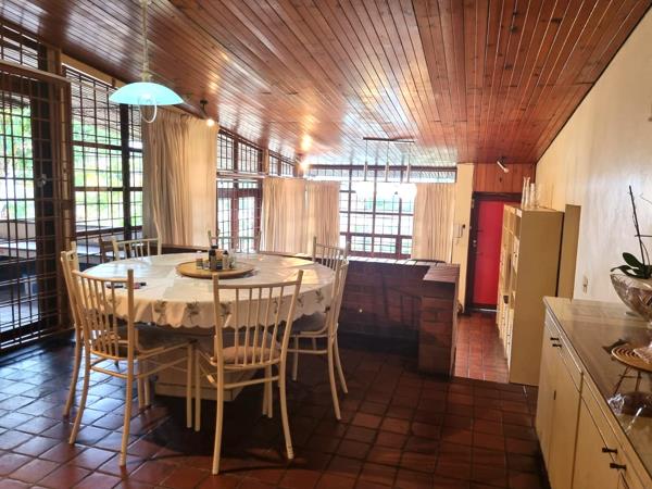 The heart of the home is its well-appointed kitchen, featuring sleek granite countertops and a spacious scullery equipped to house all major appliances efficiently. Adjacent to the kitchen lies a charming dining room, offering serene views of the lounge, pool, and patio, creating an inviting space for family gatherings and entertaining guests.