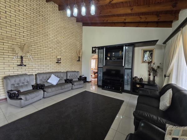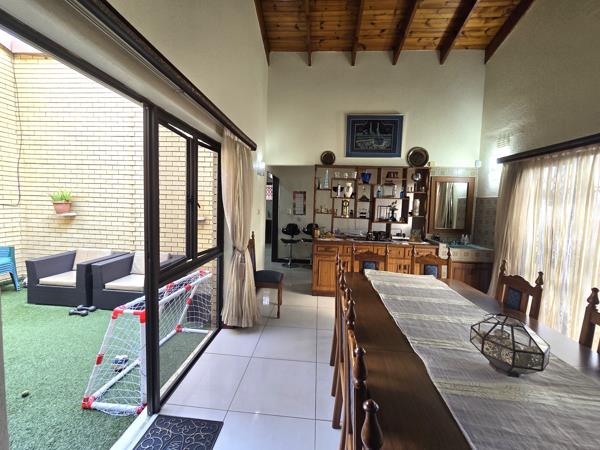 Entertain in style with a large dining room that comfortably fits a 16-seater table, opening out to a private patio ideal for family gatherings or weekend braais.