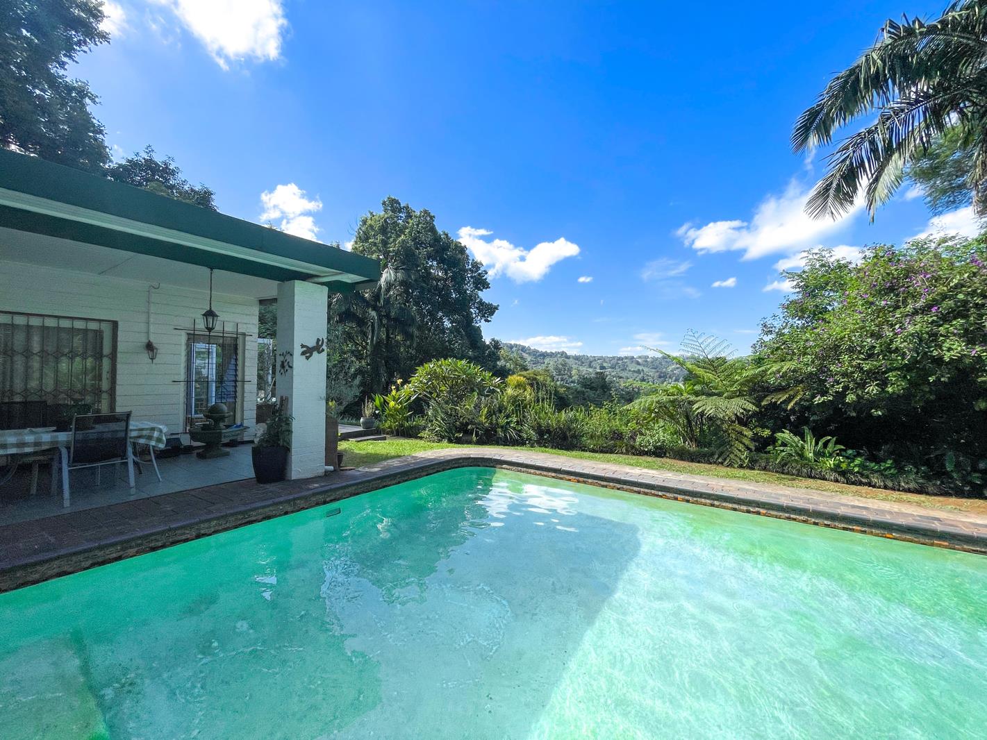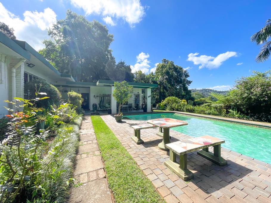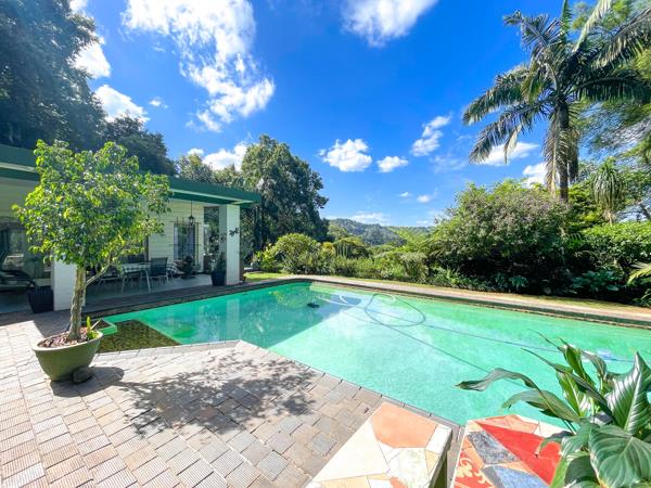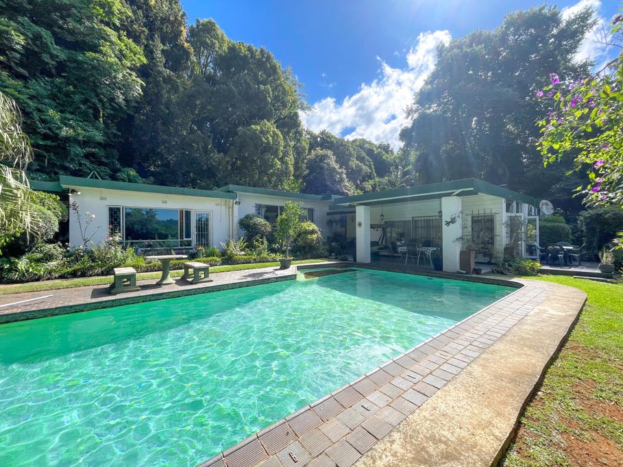 Embrace the essence of paradise in this extraordinary property, ideally situated on a serene street in Winterskloof, providing seamless access to both Hilton and Pietermaritzburg. Enjoy the utmost tranquility and seclusion, surrounded by nature with no visible neighbors. The meticulously designed tropical-inspired garden not only enhances privacy but also requires minimal maintenance, offering a lush backdrop to your daily life. Spanning an expansive 1.2 hectares, this property presents a rare opportunity for development, with the potential to build three additional units. Step inside the thoughtfully crafted home featuring 4 bedrooms and 3 bathrooms, including 2 ensuite. The well-appointed kitchen seamlessly connects to an open-plan lounge, dining area, and sunroom, complete with a fireplace and stacking doors lead to a double patio overlooking an expansive pool, providing a captivating panorama of the Hilton valley. The bedrooms, strategically open onto a spacious corridor that can serve as an additional lounge, playroom, or office space, maximising the functional layout of the residence. Additional amenities include a shed, domestic quarters, an outside laundry, 3 carports, a full garage, a workshop, horse stables, and a fully established clivia nursery, promising a steady additional income stream. This property is a canvas for endless possibilities - green enthusiasts can nurture the clivia nursery or transform it into flourishing vegetable plantations. For those fond of animals, the expansive space accommodates horses and a plethora of household pets. Developers and renovators alike can explore the potential to create additional dwellings or expand the current property footprint. Immerse yourself in the boundless space and tranquility that defines this haven. Your dream property awaits contact us to schedule a viewing of this piece of true paradise