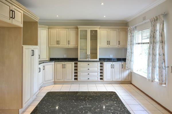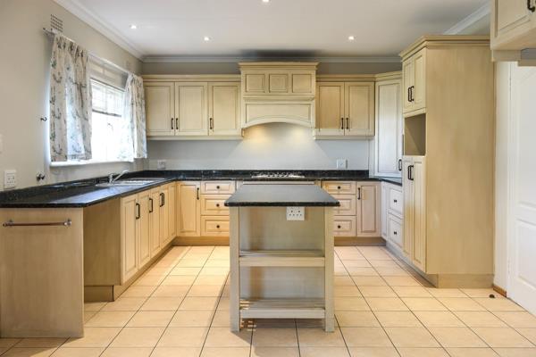 The gourmet kitchen is a chefs dream, featuring a centre island, granite countertops and plenty of cabinet space.