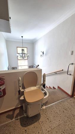 Up the stairs, either walking or sitting in the chair lift, this unit is conveniently near the staircase, so you dont have to go far. Here youll find a light-filled, well-kept space that gives you privacy when you want it, and connection when you need it. It comprises a living area, a spacious bedroom with an ensuite bathroom, and a balcony overlooking the fishpond. The bathroom has a shower that is thoughtfully equipped with a rail to hold onto and a chair to sit while showering. With only around 28 residents in total, youll enjoy a peaceful, tight-knit community without ever feeling crowded.