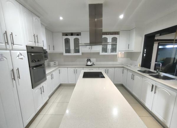 Inside, youll find three well-appointed bedrooms, each fitted with air-conditioning and generous built-in cupboards. The main bedroom includes its own ensuite bathroom, complemented by a separate family bathroom. A dedicated prayer room or study adds valuable flexibility.