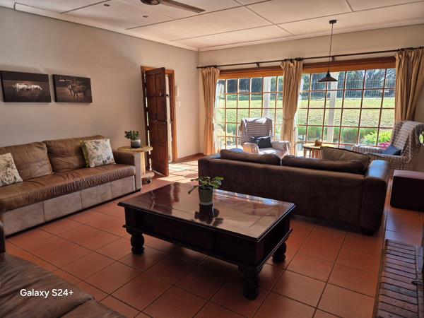 The main house features 4 spacious bedrooms with built-in cupboards, a dedicated study, and generous living spaces including a lounge with fireplace, a dining room, and a TV loungealso with a fireplace. The kitchen includes a separate scullery and a handy corner pantry.
