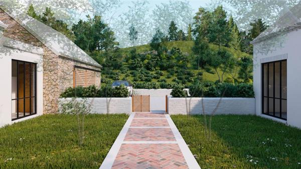 Providing a benchmark for exceptional liveability in beautiful countryside surrounds, this new build is for a luxurious residence comprising a total area of 736,5 square metres. Designed to embrace the panoramic outlook, the central core of the home encompasses a tranquil landscaped courtyard entry area that encompasses two protected patio areas and extends into the light filled spacious integrated living area that has a seamless interaction with the expansive covered verandah, complete with a built in braai, that opens fully to the outdoors ensuring a seamless transition between inside and outside areas.