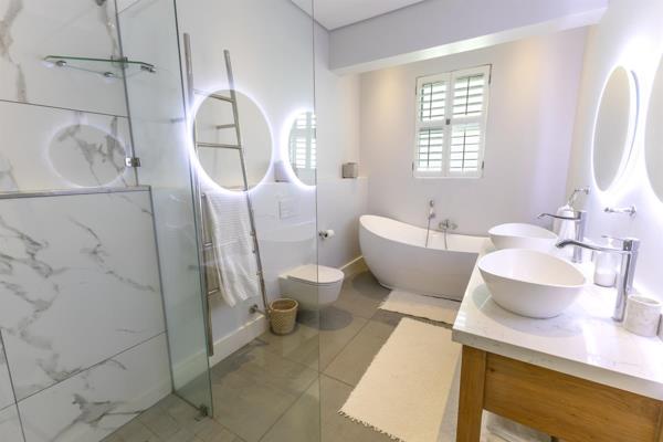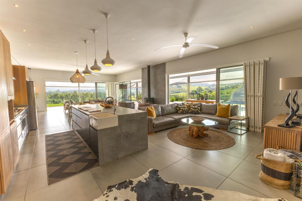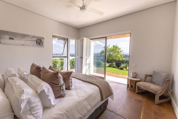 Four bedrooms open directly to the outdoors, ensuring a strong connection to the surrounding landscape. Two are en suite, and all three bathrooms feature sophisticated, upmarket finishes that reflect the homes overall attention to detail. Privacy is carefully balanced with openness, allowing each bedroom to function as a peaceful retreat.