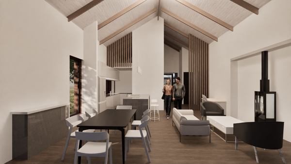 The old dairy building is being reimagined into a vibrant social hub, featuring a pickleball court, boules pitch, Rain Queen pool, wood-fired hot tub, braai area, and boma ideal for relaxed country gatherings.