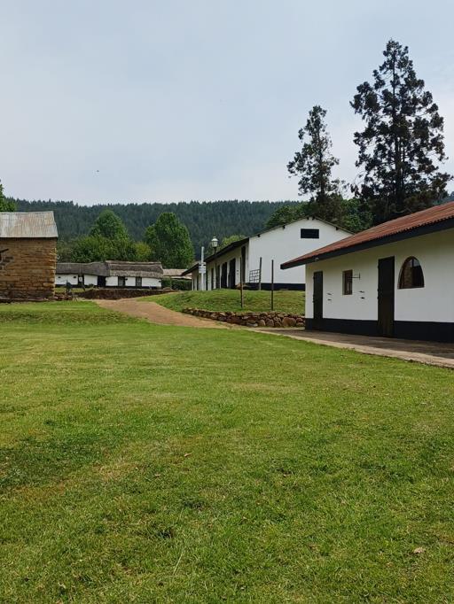 In addition to the stone-walled fort, which is the third oldest military building in KwaZulu-Natal and an Amafa-protected heritage site, the property features a collection of residential buildings set in a peaceful environment, providing an ideal retreat for discerning buyers. These include a beautifully restored three-bedroom period home, three charming one-bedroom cottages, and a bachelor pad.