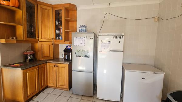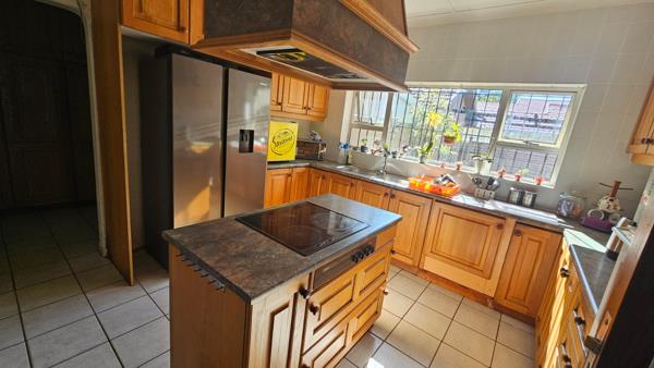 This beautifully maintained 4-bedroom, 2-bathroom home offers the perfect combination of comfort, functionality and peace of mind, making it ideal for families who value space, style and outdoor living. The warm and inviting interior features two lounges, a dedicated dining area and a spacious kitchen complete with an island, electric stove and hob, elegant wooden cupboards and space for a double-door fridge. A separate laundry area adds everyday convenience, while the bathrooms are well-appointed, complemented by a separate toilet for added practicality.