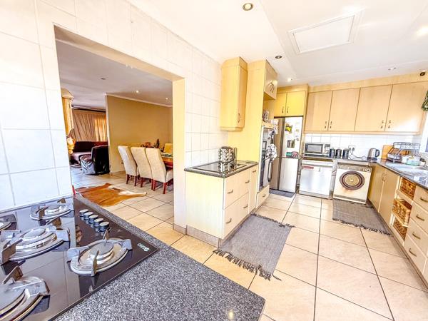 The fully fitted kitchen offers ample cupboard space and a practical layout that makes meal preparation effortless. Flowing from the kitchen, the spacious lounge and dedicated dining area create a welcoming space for family living and entertaining, offering the perfect setting for both everyday comfort and special occasions.