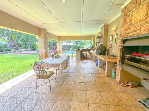 Outdoor living is equally impressive, featuring a stunning undercover patio with a built-in braai and bar, overlooking a sparkling pool and expansive gardenperfect for entertaining or simply relaxing in style.