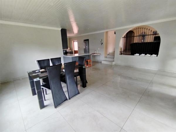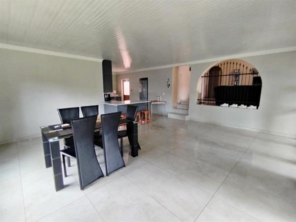 Enjoy modern comforts with air conditioning and ceiling fans throughout. The house is fitted with aluminium windows and tiled floors, enhancing its appeal. The property is totally walled for privacy and security, complete with burglar bars and an electric gate for peace of mind.