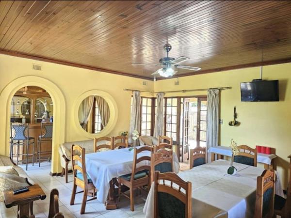 This property features 10 bedrooms, 8 bathrooms, a double garage, and parking space for 10 vehicles. Inside you will find two lounges and a dining area. The property is fully fitted and tiled throughout. Outside, there is a swimming pool and a spacious paved courtyard, ideal for hosting outdoor events such as weddings and parties.