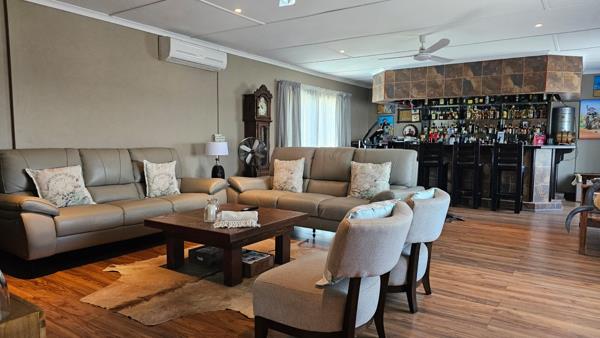 Step into a home designed for relaxed living and year-round entertaining. This stunning three-bedroom, two-bathroom residence features two lounges, a modern kitchen with granite worktops, and a seamless flow to the outdoor entertainment area complete with a built-in braai, sparkling swimming pool, and a separate pool room, and a built in bar!