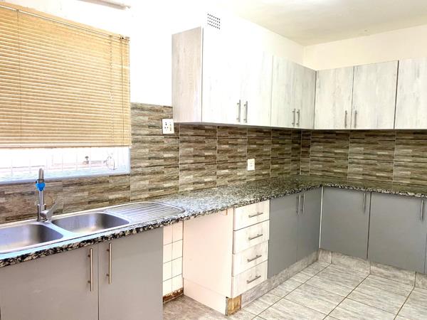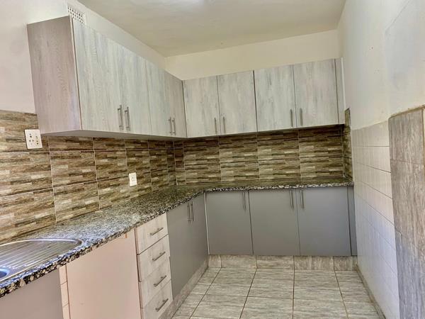 This spacious 1.5-bedroom flat is fully tiled, has a beautifully done kitchen and lounge area, perfect for relaxation.