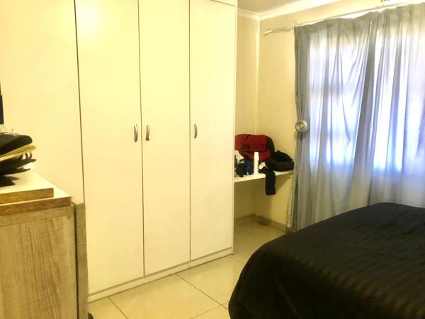 This apartment offers you two bedrooms, with the main bedroom being very spacious with built-in cupboards, bedroom two also with built-in cupboards, an open plan lounge and a fully fitted kitchen, a bathroom, and a single lock-up garage for your vehicle.