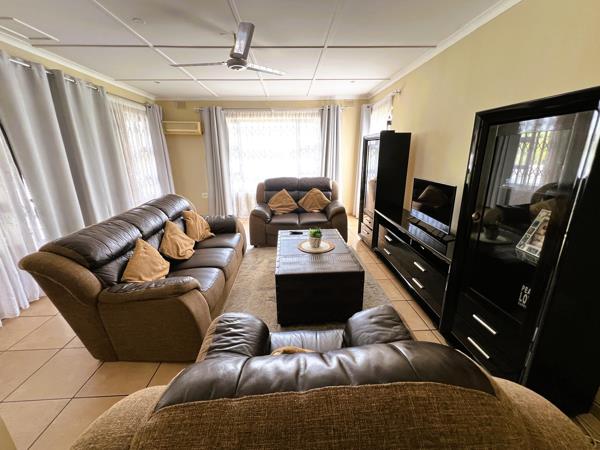 The open-plan kitchen with scullery flows seamlessly into the dining area, while the spacious lounge opens onto an entertainment area complete with a built-in braaiperfect for hosting family and friends.