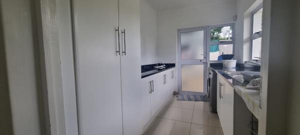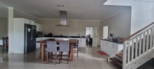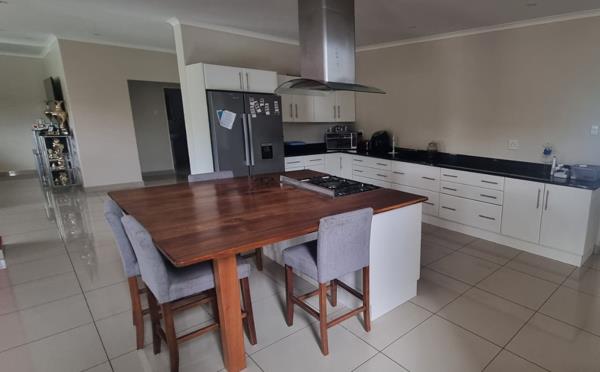 Indulge in the epitome of modern living with this fully tiled, 4-bedroom house adorned with exquisite porcelain tiles. Each bedroom boasts its own en-suite for ultimate privacy. The heart of the home is a fully fitted island kitchen featuring a sleek gas stove, scullery, and pantryall adorned with elegant granite tops. Enjoy open-plan living with a spacious dining room and dual lounges on different levels.