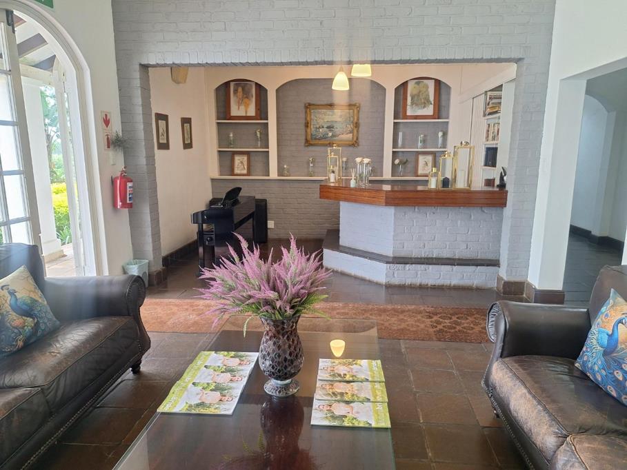 Outdoors, the estate shines with a sparkling swimming pool, manicured gardens, and a dam that supplies water directly to the house, complemented by water tanks for added self-sufficiency. Practical amenities include two garages, staff quarters, and pet-friendly grounds.