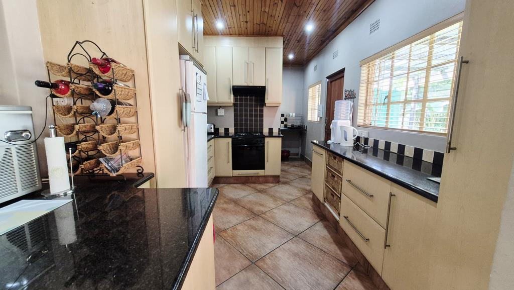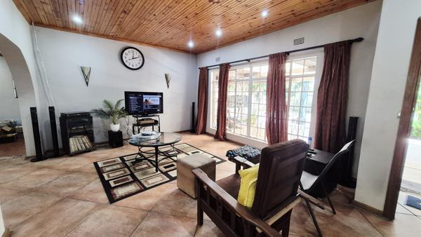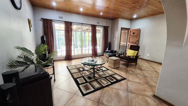 Outside, a large veranda sets the stage for family gatherings and entertaining, with braai, overlooking a sparkling pool and a breathtaking gardena true haven for bird lovers.