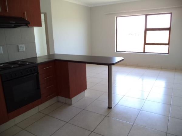 It offers one bathroom, two spacious bedrooms with built-in cupboards, a fully fitted kitchen, and an open-plan lounge area.