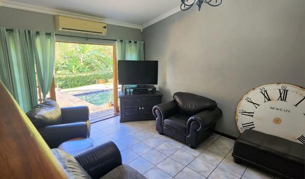 The main house, immaculately tiled throughout, boasts three bedrooms and two bathrooms, alongside an exquisite kitchen, dining area, and a spacious lounge perfect for family gatherings.