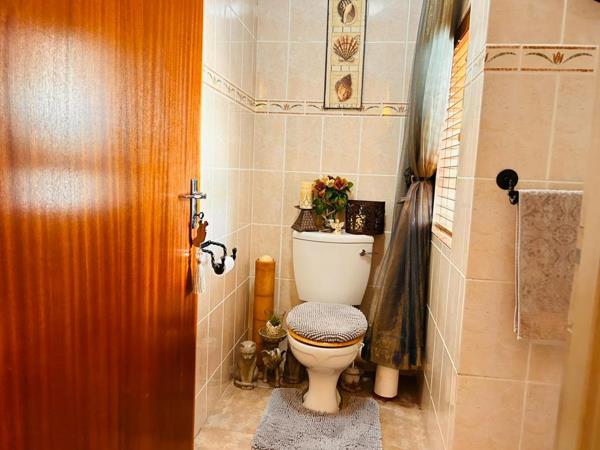 Beautiful home inside and out, it offers three bedrooms, master bedroom with an ensuite, walk in closet, balcony with nature views, shared family bathroom, two guest bathrooms, huge open plan lounge, TV area, dining area, sitting area, neat kitchen with gas stove, scullery and laundry.