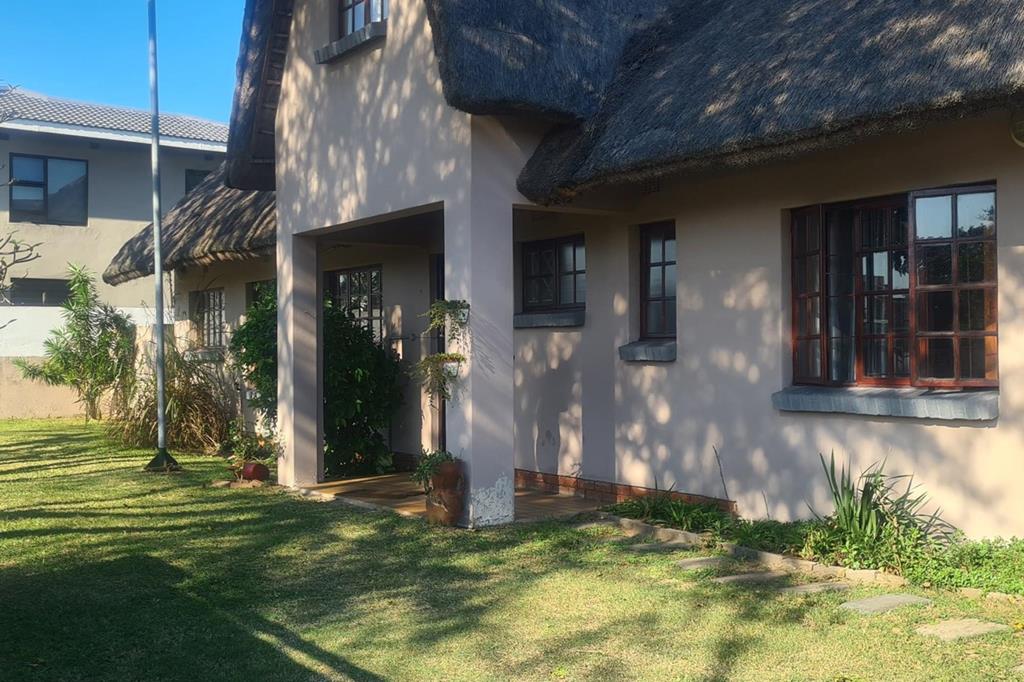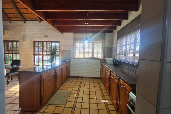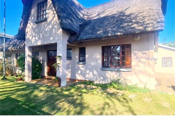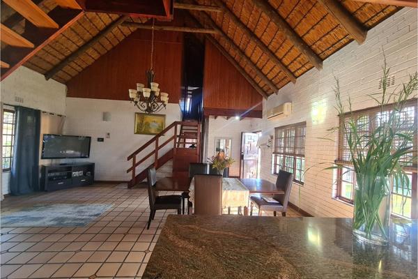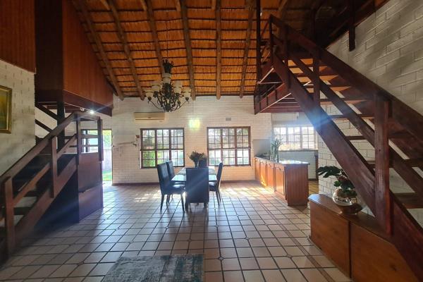 Welcome to this stunning 4-bedroom, 4-bathroom home that perfectly combines comfort, style, and convenience. Located in a secure area, this property boasts a charming thatched roof with exposed wooden beams, exuding a warm and rustic ambiance. This property has the potential to be used as a B & B or its flatlets just for additional income purposes.Main House Features:Bedrooms:4 generously sized bedrooms, each with ample natural light.Bathrooms:4 modern bathrooms, ensuring comfort and privacy for all family members.Living Space:The open-plan design seamlessly connects the lounge, dining room, and kitchen, creating an inviting and spacious environment perfect for family living and entertaining guests.Kitchen:A contemporary kitchen equipped with ample storage, and a separate scullery for added convenience.Loft:A versatile loft space that can be used as a home office, playroom, or additional living area.Additional Accommodations:Bachelor Cottages:3 well-appointed bachelor cottages provide excellent rental income potential or comfortable guest accommodations.Flatlet:A 1-bedroom flatlet offers additional living space or rental opportunity.Outdoor and Entertainment:Swimming Pool:Dive into the sparkling swimming pool, an ideal retreat for hot summer days.Entertainment Area:A beautifully designed entertainment area enhances the outdoor living experience.Location:Schools:Conveniently located near both private and government schools, making it an excellent choice for families.Airport:Close proximity to the airport ensures ease of travel.Shopping and Amenities:Within a 10-minute drive from the main shopping mall and other essential amenities, providing ultimate convenience for your everyday needs.
