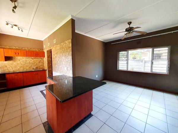The heart of the home is its generously sized kitchen, complete with granite countertops, which flows seamlessly into the open-plan dining and lounge areas. The living space opens onto a covered patio that leads out to a large, well-maintained garden ideal for entertaining or relaxing in privacy.
