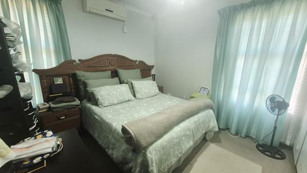 All three bedrooms are generously sized, each fitted with built-in cupboards and air conditioners for year-round comfort. The main bedroom features a private en-suite bathroom, while the remaining two bedrooms share a neat family bathroom.