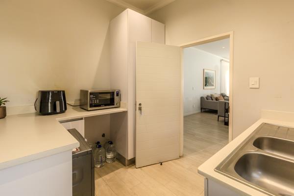 Step inside to find 3 spacious bedrooms and 2 bathrooms, with the main suite offering a luxurious walk-in closet. The open-plan lounge, dining, and kitchen area creates a seamless flow, ideal for both everyday living and entertaining. The modern kitchen boasts granite countertops, a separate scullery, and finishes that reflect thoughtful design.