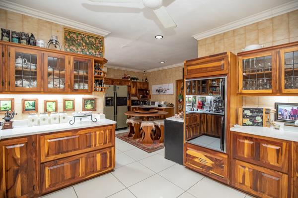 This home has three well-apportioned living spaces, the first and main living area connects effortlessly with the open-plan kitchen. The Second Living Space is part of the open plan living areas and has folding stack doors that go out to the covered entertainment area with built-in braai overlooking the swimming pool and boma area.