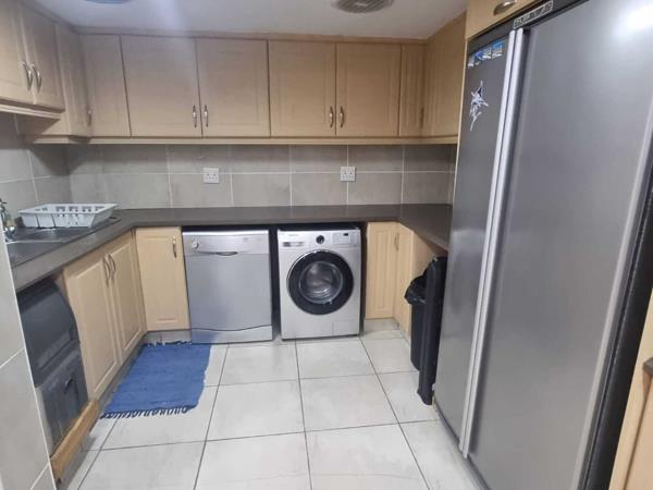 Practical features of this apartment include a single automated garage for secure parking and a linen closet for added storage convenience. Residents also have the privilege of direct access to a communal pool and a braai area, creating a perfect space for socializing and outdoor enjoyment.