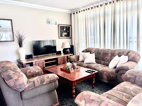 This charming unit features three spacious bedrooms, each with ample cupboard space. The open-plan lounge and dining area seamlessly flow into a well-appointed kitchen. From the kitchen, step out into a delightful garden and patio, ideal for relaxing with a good book or enjoying a cup of tea.