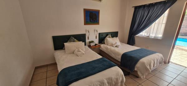 The guest house stands on three consolidated stands, offering ample space and privacy. The main guest house premises feature another pool, a lapa with a self-catering kitchen, and a braai area, perfect for guests to enjoy. Additionally, the office, communal dining room, kitchen, and laundry facilities are conveniently located on the property.