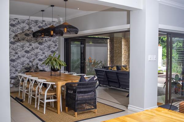 Welcome to a home that truly raises the bar! This stunning, interior-designed masterpiece is an absolute must-see. More than just a feast for the eyes, it has been thoughtfully created to embrace family living at its finestall within the exclusive, secure, and serene Mzingazi Golf Estate. From the moment you step through the picture-perfect front door, youre greeted by an inviting entrance hall that seamlessly flows into the open-plan kitchen, dining, and living areas. Designed for both style and functionality, this space is perfect for family interactions and effortless entertaining. The lounge and dining room open onto a covered wooden deck overlooking a pristine garden and sparkling poola private oasis where you can relax and unwind. The built-in boma/braai area takes outdoor entertaining to the next level, making every gathering unforgettable.