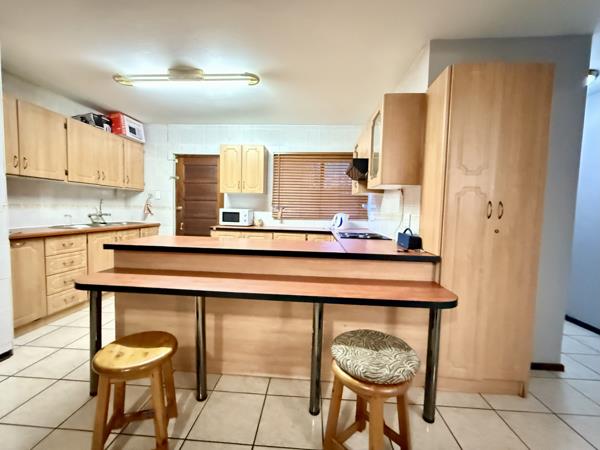 It boasts open plan living areas, leading to a very private back yard, with a covered awning. The kitchen is fully fitted with lots of cupboard space. There is a guest restroom downstairs to accommodate visitors.