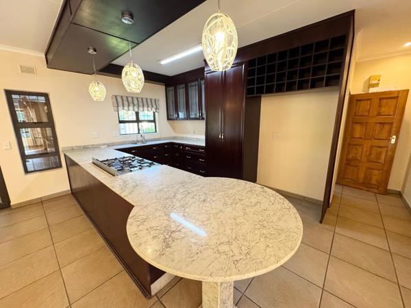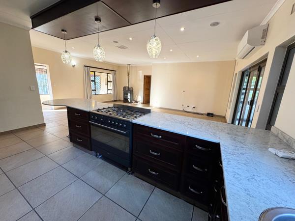 The air-conditioned entertainment area with built-in braai lends itself to all year-round entertaining. It overlooks & opens up to a beautiful & garden area