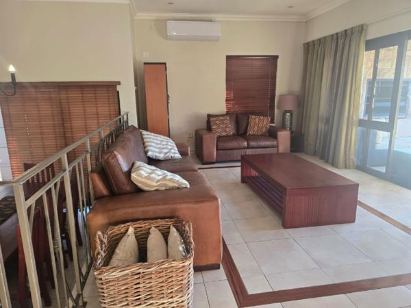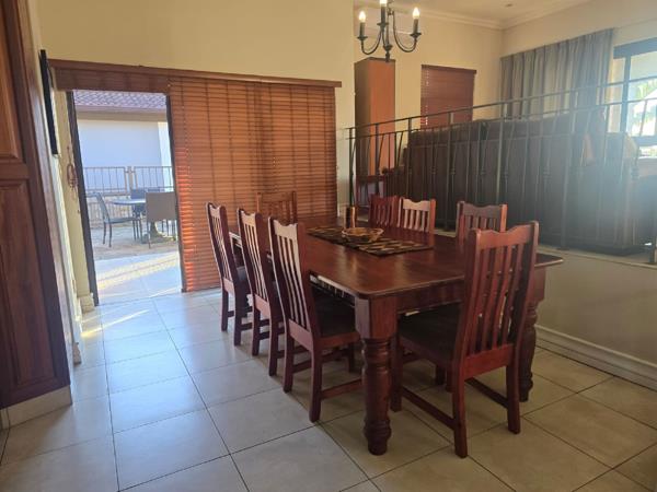 The air-conditioned, open-plan living areas feature a fully fitted solid-wood kitchen that flows seamlessly into the dining room, opening onto a covered patio and private poolideal for effortless indoor-outdoor living. The spacious lounge connects to an elevated entertainment balcony complete with a built-in braai and breathtaking views.