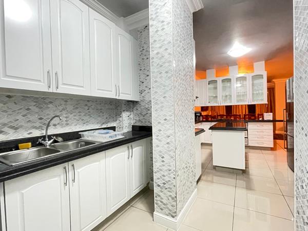 Elegant TV Lounge & Dining Area: Interleading with a beautifully designed kitchen featuring high-end finishes, integrated appliances, and a separate scullery/laundry.