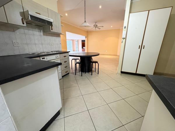 It features four spacious, air-conditioned bedrooms and three well-appointed bathrooms, ensuring comfort and privacy for all. The open-plan living area flows seamlessly into a fully fitted kitchen, complete with a scullery and laundry areaperfect for the demands of a busy household. A private home office/study is tucked away from the main living areas and offers ample filing space, ideal for remote work or quiet study.