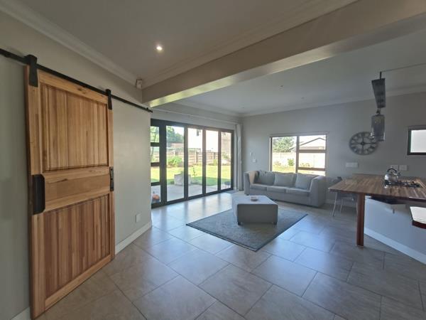 Welcome to this beautifully designed four-bedroom, three-bathroom family haven that effortlessly blends comfort, style, and practicality. As you step through the front door, you''re greeted by a generous lounge area that seamlessly flows into the open-plan dining room and an ultra-modern kitchen. The kitchen is a chefs dream, fitted with both gas and electric stoves, a cozy kitchen nook, a spacious pantry, and a separate scullery-laundry area. Large aluminum stacker doors open from the dining room to a lush green garden perfect for entertaining or relaxing in natures embrace.