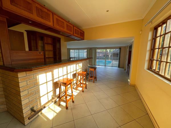 The spacious interior welcomes you with sunlit lounges, a gracious dining room, and a fully fitted kitchen ready to inspire your next culinary masterpiece. Five well-proportioned bedrooms and three bathrooms provide the perfect balance of privacy and togetherness for a bustling family. The crown jewel? An entertainers sanctuarycomplete with built-in bar and braaithat flows effortlessly to a lush garden and shimmering pool, setting the stage for everything from weekend braais to moonlit swims.
