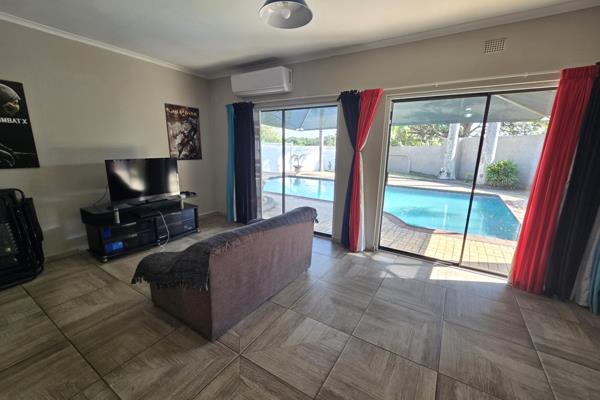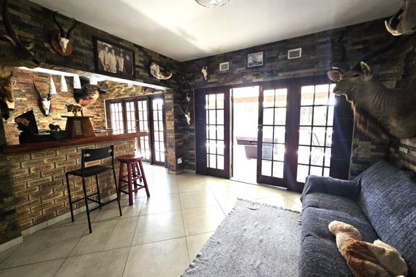 The layout inside is designed for modern living, with the lounge, TV room, and dining room flowing seamlessly together. A stylish bar overlooks the entertainment area and braai, with plenty of countertop space for hosting. The home is fully equipped with a solar power system and two JoJo tanks, making it eco-friendly and sustainable. For peace of mind, the property also comes with CCTV security cameras.