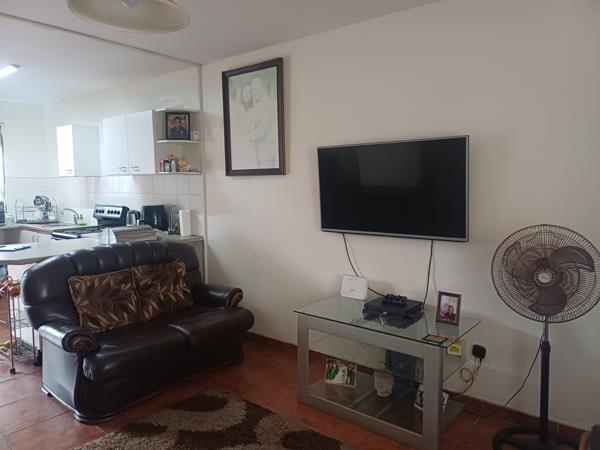 The open-plan lounge and dining area create a welcoming space for relaxing or entertaining, while the fitted kitchen comes complete with a freestanding stove and ample cupboard space. A private courtyard provides a low-maintenance outdoor area.