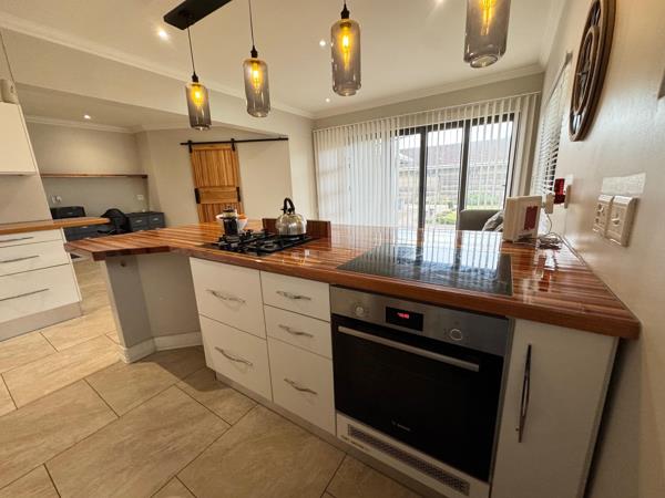 Hand-crafted wooden countertops take centre stage, bringing character and charm to the modern layout. A separate scullerylaundry keeps the working areas neatly out of sight while remaining easily accessible.