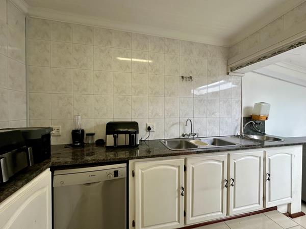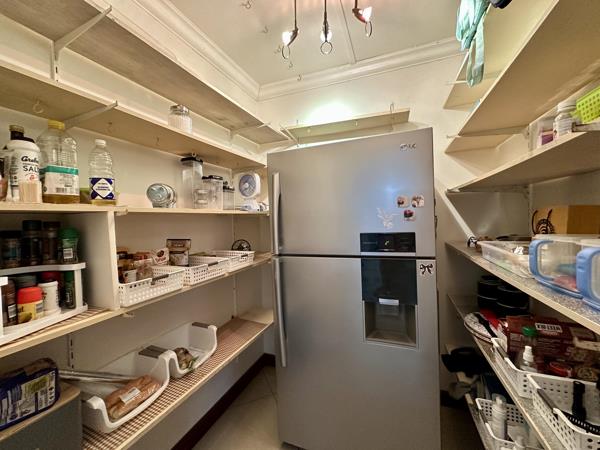 Outdoor living is elevated to a new level. The low-maintenance designer garden wraps around a pristine, beautifully finished pool, creating a serene backdrop for both relaxation and entertainment. The covered entertainment areawith its built-in braaisets the tone for year-round gatherings, while a charming pergola adds an extra layer of sophistication and versatility for alfresco dining or peaceful moments outdoors.
