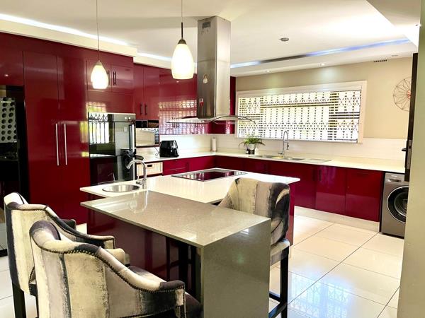 Humongous kitchen featuring granite countertops and modern appliances. Three spacious bedrooms, all equipped with built-in cupboards and air conditioning. The master bedroom is a private retreat, complete with a huge en-suite bathroom, a private lounge, and a walk-in closet. Entertainment area with a sparkling pool, perfect for summer relaxation. Double garage, a carport, and ample additional parking space. The property is secured with an electric fence and surveillance cameras for peace of mind. Includes a backup inverter system for uninterrupted power during loadshedding. Situated in a perfect, top-notch neighborhood. This property truly has it all.