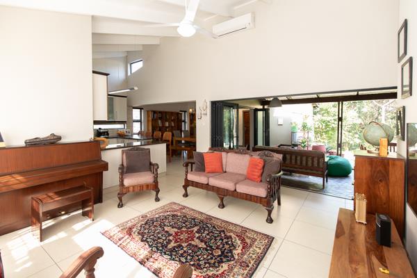 A tasteful open-plan living area & kitchen overlooks a large entertainment area.