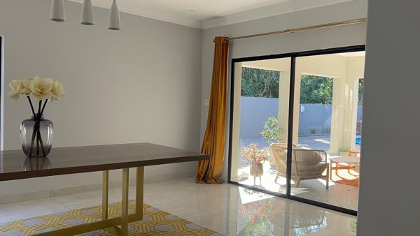 Stunning and immaculate home located in the golf estate. As you set foot on the paved yard, you''ll be greeted by the charm of three garages, a storeroom space, and endless opportunities for investors. Upon entering the house, you step into a breathtaking ground floor featuring a cozy and open-plan lounge that exudes comfort, offering views of the pool and patio. The lounge seamlessly flows into a strikingly beautiful kitchen with a scullery, an office/study room, guest toilets, and a ground-floor bedroom with an en-suite bathroom that opens up to the pool area, providing a serene view.