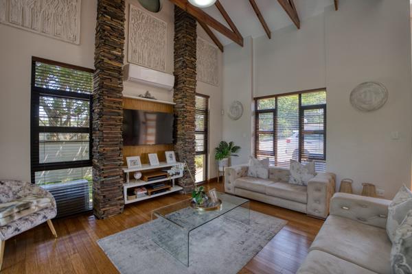 The well-appointed scullery and chic bar area bring both convenience and sophistication to this home, while glass doors throughout open to a sparkling pool and a covered deck, creating a seamless indoor-outdoor flow. A double automated garage, along with an additional garage, enhances practicality. Nestled within a safe and secure estate, this home is a true sanctuary for those who value elegance and peace of mind.